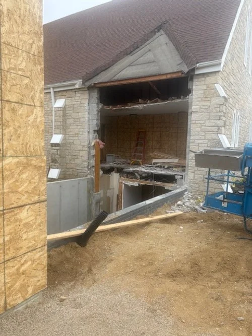 TEMPORARY WALLS ADDED TO THE NARTHEX AND CURRENT FELLOWSHIP HALL